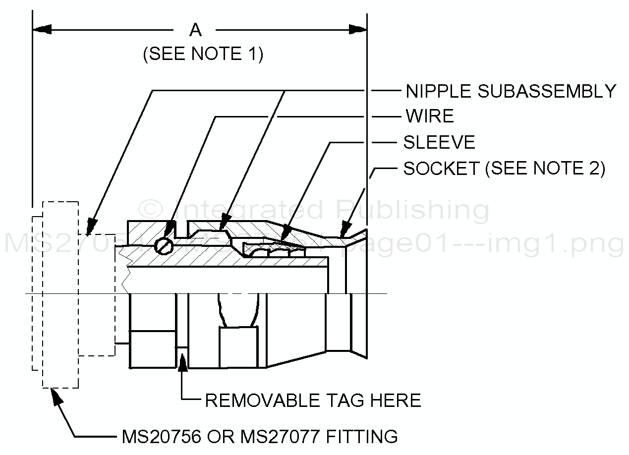 1. Dimension A, see table II, is the dimension between the hose end of the socket and the free end of the insert when the socket is assembled on the nipple subassembly.