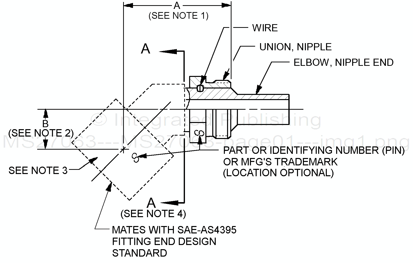 1. Dimension A, see table II, is measured between the hose end of the threaded section of the union and the free end of the insert at its centerline.
