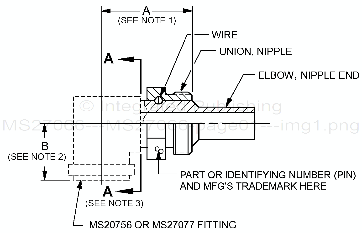 1. Dimension A, see table II, is measured between the hose end of the threaded section of the union and the centerline of the insert.