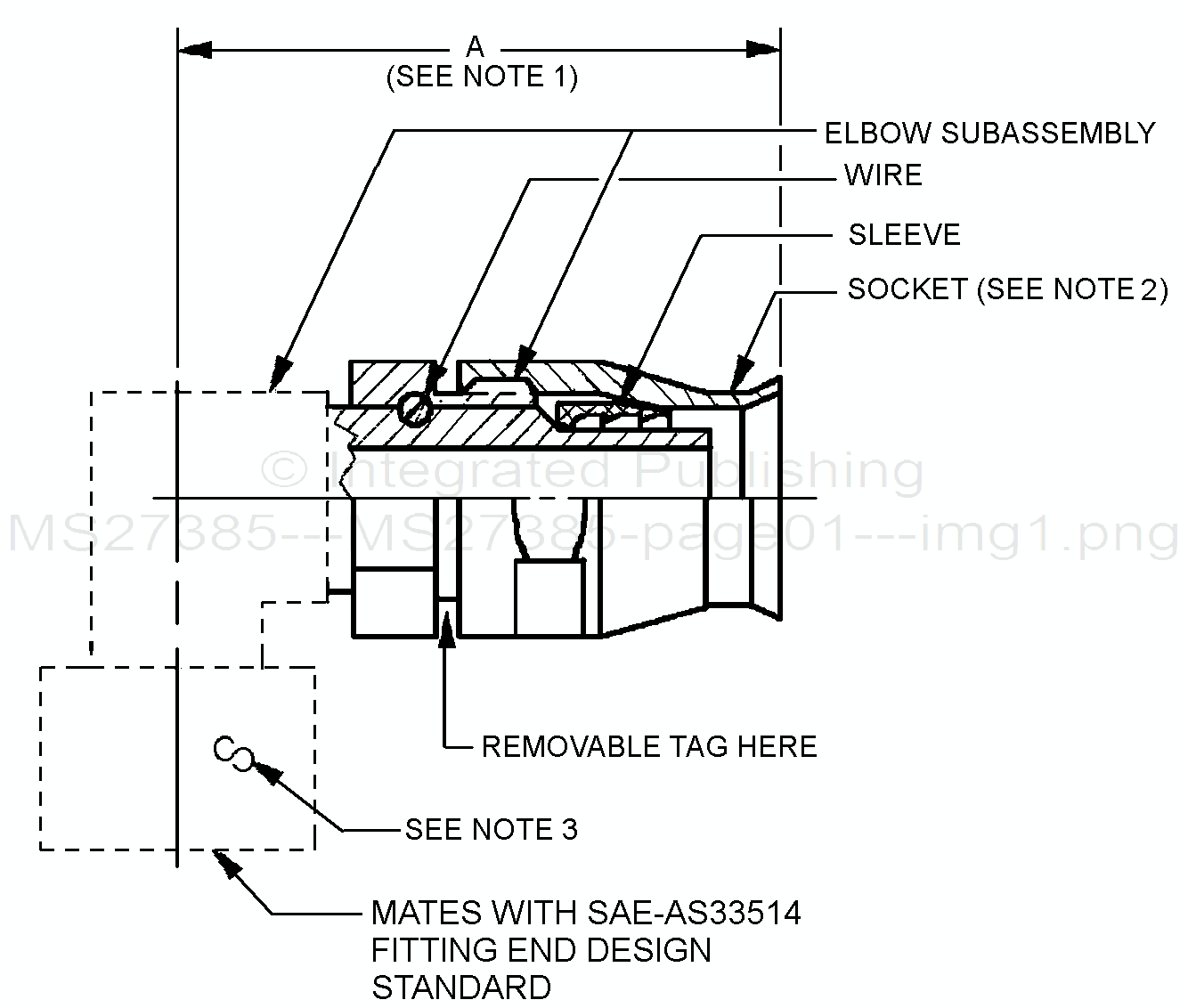1. Dimension A, see table II, is measured between the hose end of the socket and the centerline of the insert when the socket is assembled on the elbow subassembly.