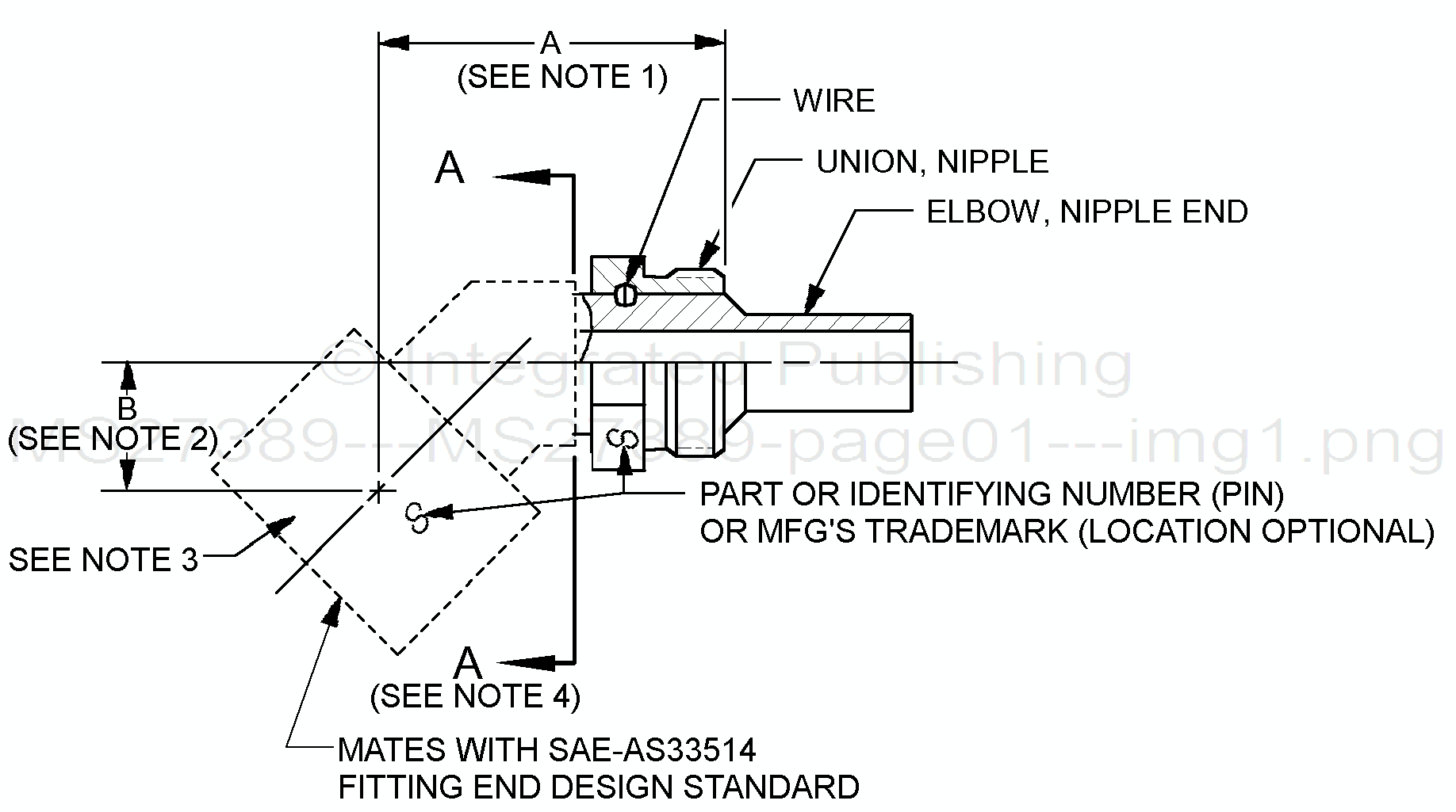 4. Any forged design of adapter components to the left of plane A-A is acceptable provided the dimensions of A and B and the requirements of this specification sheet and the procurement specification are met.