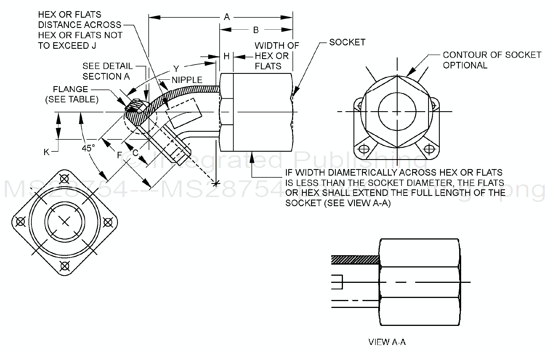 FITTING END, SELF-SEALING FUEL HOSE, SWIVEL, DETACHABLE, FLANGED, 45°